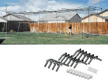The ATEC ® Backyard 70' Cage is field quality at a back yard price. Functional design, durable, high strength materials, quick and easy set up. Dimensions are 70' L X 10' W X 10' H. Great for indoor or outdoor use .Lightweight and portable it is constructed using a rugged #21 , 1 3/4 " black polyester mesh treated for weather and UV resistance. It is trimmed with 1/4 " black nylon rope for added support where its needed most. Installation kit includes frame corners, unions, and white leg caps for safe use indoors and quick ink connectors for suspending the net internally to the frame. All corners and unions are 1 1/2 " welded steel tube with a durable powder coat finish for long wear. All you need to purchase separately is 38 ,10 FT. pieces of 1 3/8" fence top rail tubing , typically priced under each . Purchase separately at any home improvement store. 1 year limited warranty.